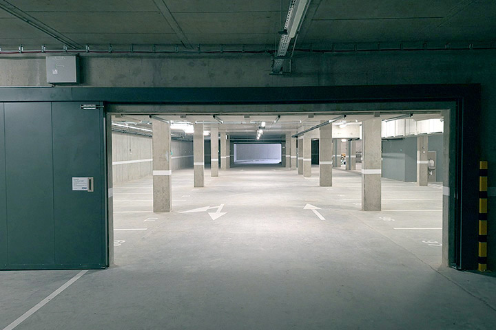 A biztonságos, telken belüli parkolást az épület pinceszintjén kialakított teremgarázs biztosítja 117 parkolóhellyel, emellett 28 felszíni beálló is kialakításra került.