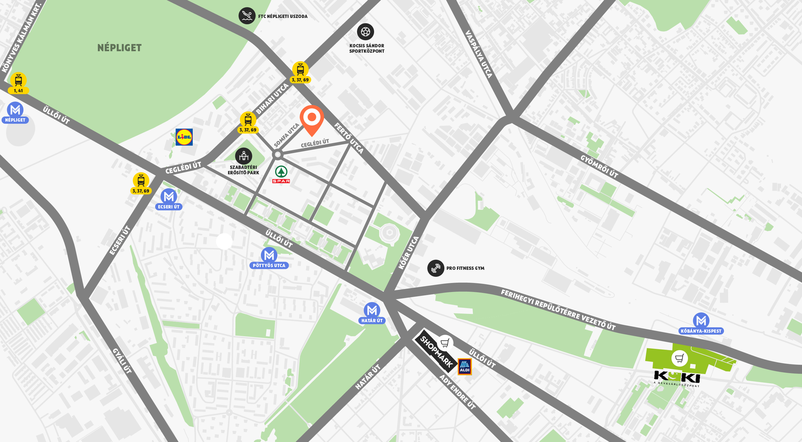 Az Üllői út közelsége révén az autós megközelítése kiváló, de tömegközlekedéssel is gyorsan eljuthatunk a város számos pontjára. 8-10 perces sétával elérhető a 3-mas metró (Ecseri út és Pöttyös utca megállói), valamint a Makk utca irányába indulva pedig a 3-mas villamos megállói találhatók.